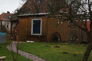 Hier die Hütte mit Ausleger für das Rolldach nach Abriss der alten Hütte