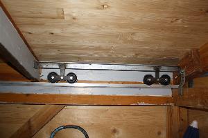 Das Rolldach läuft auf ingesammt 16 kugelgelagerten Kunststoffrollen, die auf einer T-Schiene laufen.